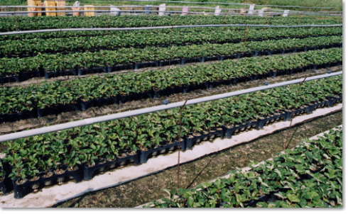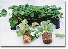 - ポリエステル製不織布を使用し、根が巻かず細根が非常に多い健全なイチゴ親株を育成します。