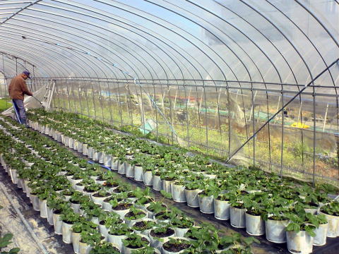 【イチゴ苗圃場】和歌山県I氏 空中ポットレストレーφ9cm15穴使用