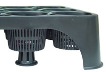 - 空中ポットレストレーの脚無は地面に直接置かないで下さい。又、稲の育苗トレーはゼッタイに使用しないで下さい。脚無はベンチ(棚)及びパイプ等で地面から浮かせて下さい。(5cm以上)